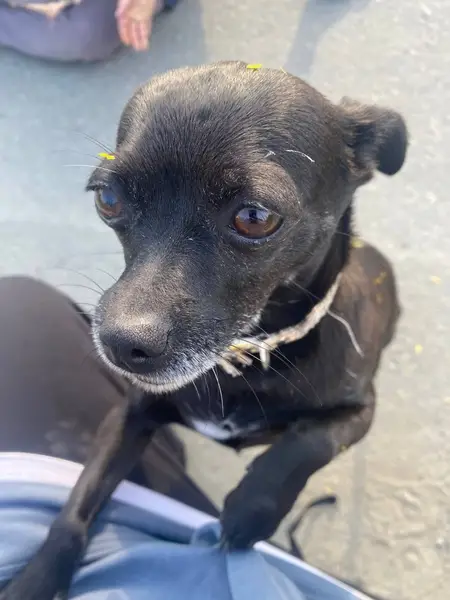 Молодая, около года наверное, девочка. Увязалась за старшей дочерью в райне школы 50, все попытки прогнать не увенчались успехом. Шла до самого дома, оставили на улице, она лает и царапает дверь. Явно домашняя была, худая. Знает некоторые команды, приучена к выгулу. Оставаться одна боится.