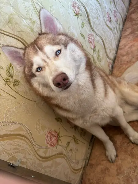 В ошейнике. Глаза разного цвета.