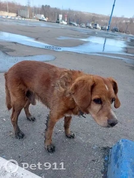 Появился старый пёс, вдали от населённых пунктов (Ш. Космическое).Плохо видит и передвигается.Здесь бродячие собаки и постоянно автомобили ездят(опасно ему здесь находиться)Есть ошейник без адресника. Пёс сильно скулит.
