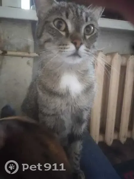 Серый с черными полосками и пятнами, на ушах маленькие кисточки, белый подбородок, на животе узор напоминающий лицо. Имеет привычку вставать на задние лапы опираясь на ногу человека. Кот кастрирован