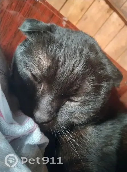 Чёрный вислоухий кот, не стериализован, имеет меньшую плотность шерсти над глазами, на ярком свету кажется что он тёмно коричневый, мать британка, отец дворняга, так же возможно: 1.Хромает на переднюю правую лапу 2.Будто "обклювыный" лоб Ранней осенью начал выпригивать из окна первого этажа и тусоваться с другими чёрными котами на територии 31 младшей школы, после в тот же или через день возвращался домой. Дождливый осенний вечер выпрыгнул и не вернулся