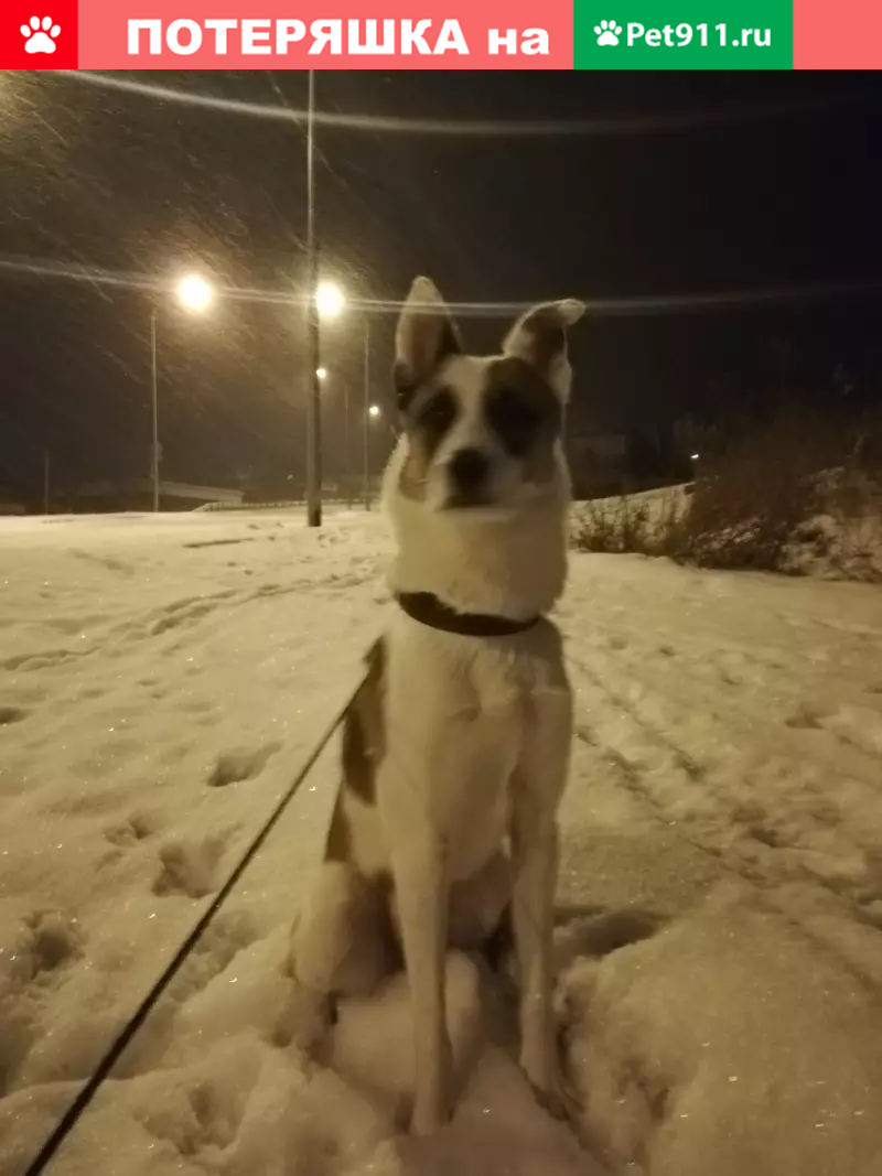 Мальчик, беспородный, телом похож на лайку. 2 года. Средней величины. Белая шерсть с рыжими пятнами, большой нос, закругленный большой хвост. Висит левое ухо. На шее был темно-коричневый ошейник. Пугливый, панически боится фейерверков.