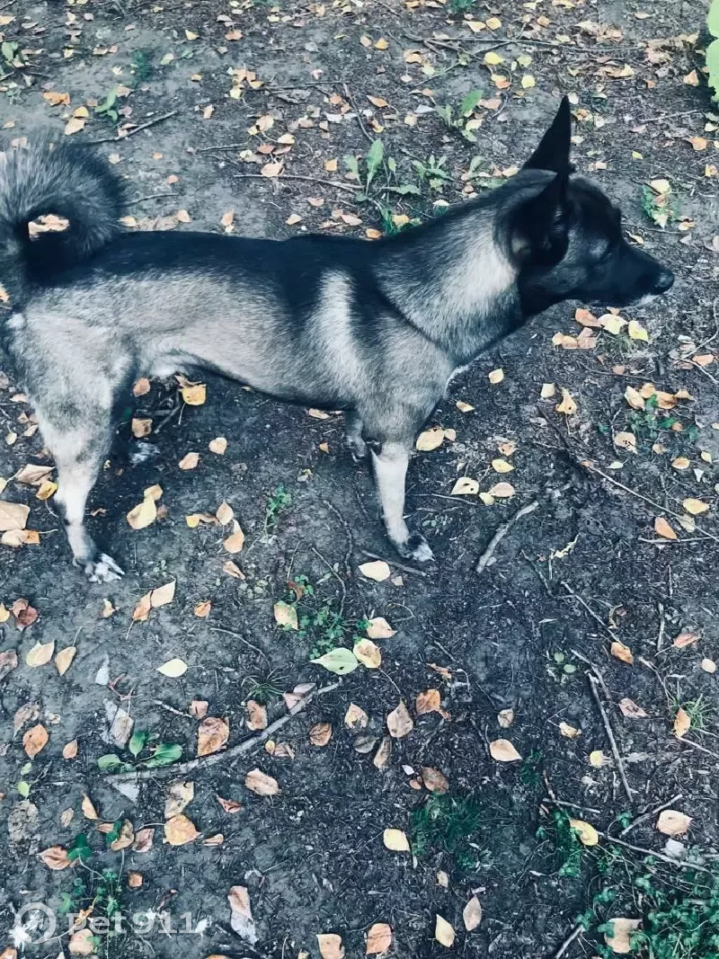 Смесь лайка, кабель, хвост колечком. На данный момент хозяин не в городе, собака была с родителями. Может искать чёрные куртки, то есть хозяев. С собакой пошли гулять до магазина, после чего потерялся, был без поводка.