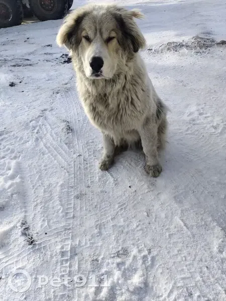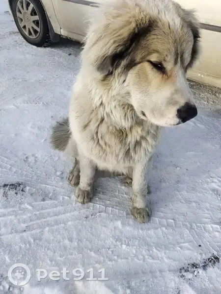 Алабай , ушки купированы , года 2 примерно , знает команды . Первый раз увидела его 10 декабря 2025 г в районе сьезда на лодочную станция за микрорайоном Хрустальный на 13 кмБайкальского тракта . Был в ошейнике , чистый . Сегодня уже без ошейника и видно что спит на улице .