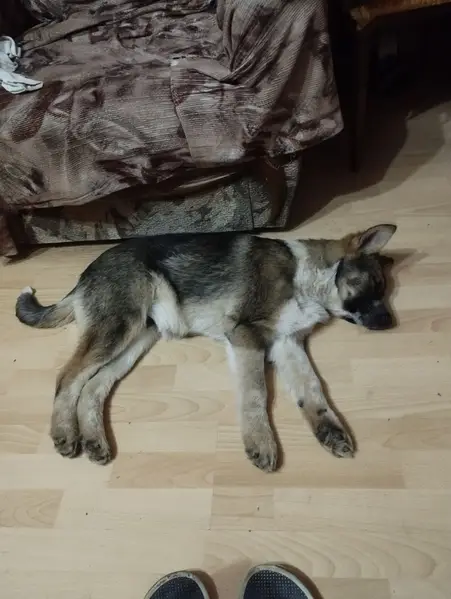 Девочка.Предположительно овчарка 2-3 месяца,воспитанная,красивый розовый ошейник.
