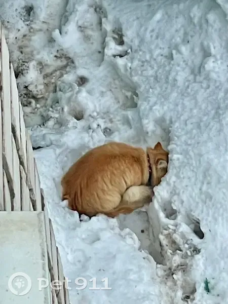 13 февраля примерно в 12:30 подъехал к своему подъезду по Орджоникидзе 6/33, выйдя из машины услышал жалобное мяуканье, подойдя к подъезду увидел очень крупного большого рыжего кота или кошку в ошейнике (похож на Мейн Куна, я не разбираюсь) увидев меня он сразу забежал в подвал. Сфотографировать не успел. Сходил за едой насыпал у входа в подвал. Жалко такого красавца, ведь у кого-то убежал, кто-то его ищет. Мой телефон 8-910-553-24-22 Удалось сфотографировать с балкона