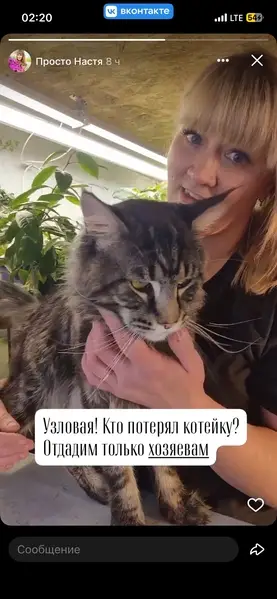 Кошка, порода Майн-кун,вышла в открытую дверь, проглядели и не вернулась(((на ней ошейник розового цвета с колокольчиком и брелок поисковик, со штрих кодом, помогите пожалуйста, очень ждём...