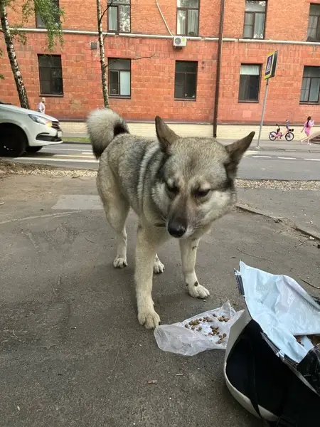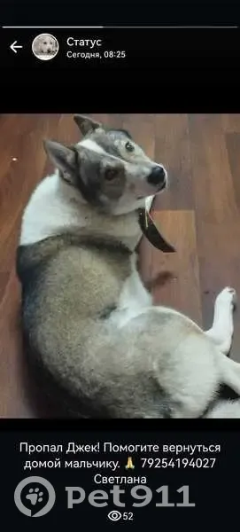 Западно сибирская лайка. Кличка Джек возраст 7лет примерно. Он уже взрослый к нам попал. Не щенком. Его отдали нам . Не кастрирован. Контактный. Идет к детям. Любит их. Добряк. И дурёха. Звонить Светлана +7 925 419‑40‑27