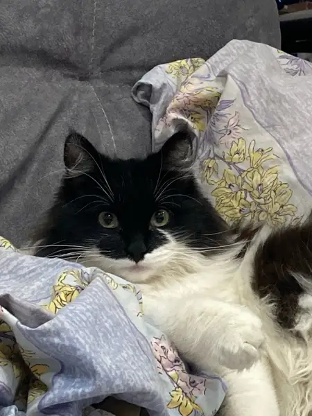 Котик шотландский вислоухий, днем прячется, поздно вечером ложится на качели во дворе. Подкармливаю. Точно домашний, был очень ухоженым, пахнул шампунем. Наши 2 кот и кошка его обижают