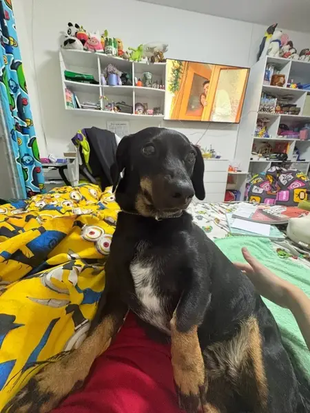 кобель таксы черный без ошейика, добрый, ласковый,