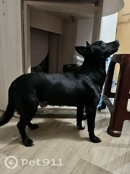 Мододой пёс. Беспородный. Маленький. Размером с небольшого спаниэля. Сначала подумали, что это щенок. При более близком знакомстве все-же предположили , что Где-то год- полтора. Чёрный с белой грудкой, ушки маленькие, остренькие, стоячие. Нашли на парковке около магазина. Был очень напуган и замёрз. Но был довольно чистый, упитанный, шерсть блестит. Отдадим только старым хозяевам.