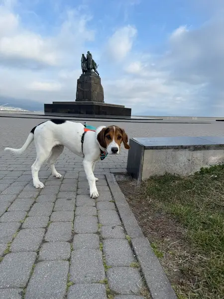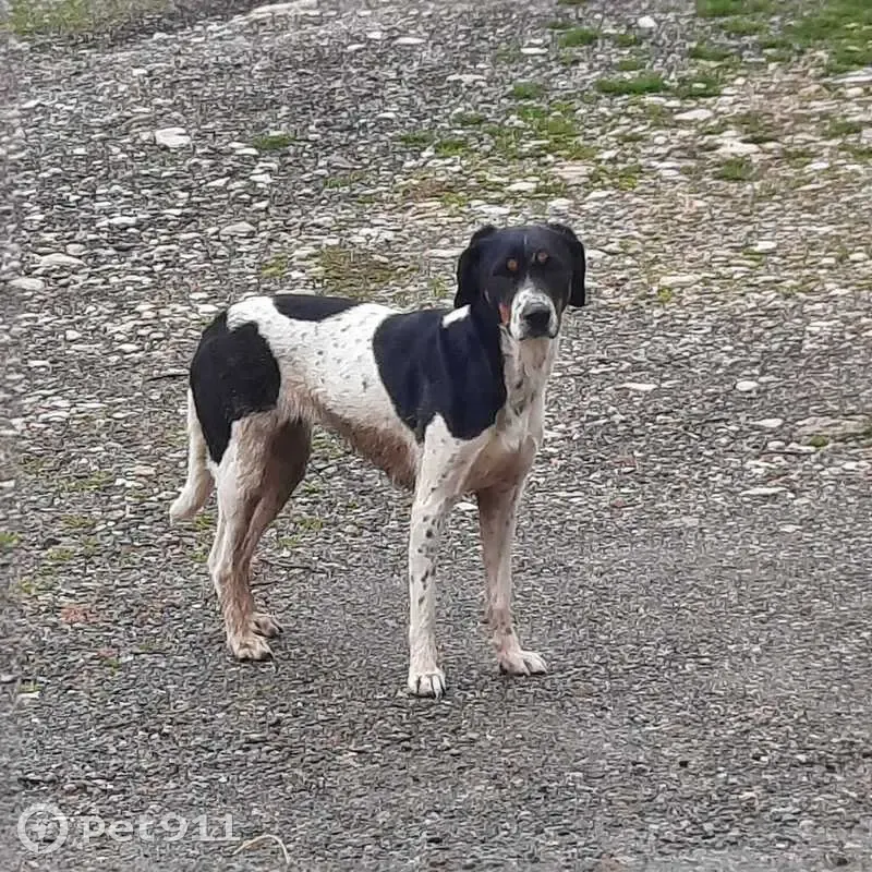 Найдена собака, молодая, девочка, охотничья порода, белая с серными крапинами и рыжеватыми ушами в шлейке. Ищет хозяев, бежит к машинам. Явно приехала на машине. Звонить 8-918-984-72-29