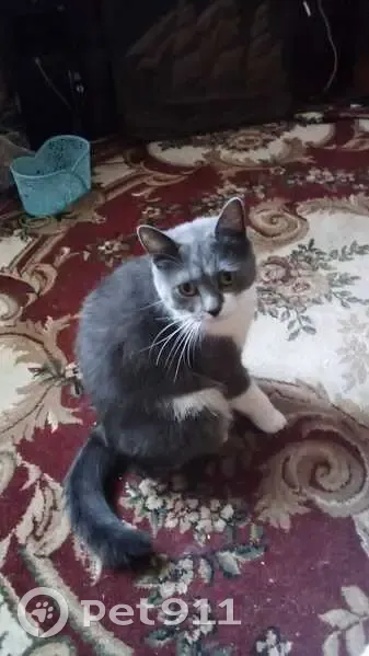 Взрослая кошка стерилизованная, серый окрас с белым пятном на груди и на лапках, зовут Мика, на улице никогда не была , пропала в районе Видова, Вруцкого, Выборной