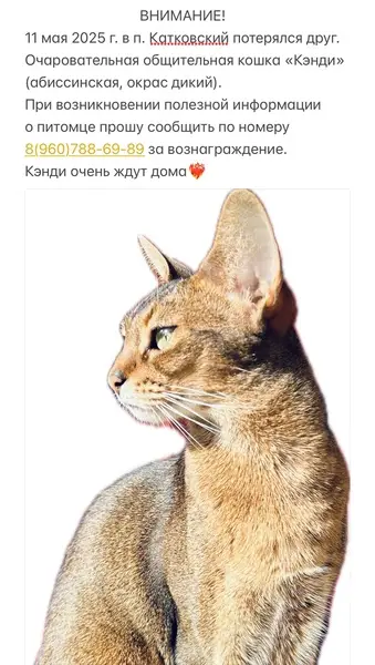 Метис абиссина, окрас дикий, мальчик, стерилизован. История с котиком конечно на грани фантастики, но как уж есть. У нас жил кот метис абессина по кличке Лето, кот был на самовыгле, 6 июня 2024 года не вернулся домой. Мы искали кота всеми доступными способами, в т. Ч. Выкладывали объявление на Pet911, далее прикрепляю ссылку на объявление https://pet911. Ru/lost/cat/rl845757 никаких результатов небыло, мы уже отчаялись. И вот 20 июня в местной группе появляется объявление о найденном коте (скрин объявления на фото 5). Мы сразу поехали забирать кота, в полной уверенности что это наш Лето, т. К. Подобные совпадения очень маловероятны. Девушка, нашедшая кота рассказала нам следующую историю: "Кот выпал из окна первого этажа и забился под балкон, когда она его достала из этого окна выглянула женщина и заявила, что этот кот ей не нужен, ей его продали на вязку с паспортом на имя Арчи (место жительства Мурманская область), кот ведёт себя агрессивно. Мы забрали кота, он был в ужасном состоянии: похудел на 3,5 кг, падал, ходил по кругу. Врачи сказали, что это инсульт или ЧМТ, после лечения (капельницы, уколы и таблетки) сказали что нужно ждать и надеяться на восстановление. Кот по окрасу тела идентичн нашему, а вот морда отличалась, мы списали это на паралич и прочие последствия. Сейчас кот чувствует себя хорошо, однако стало абсолютно очевидно, что это не наш питомец. Выкладываю это объявление в надежде, что его еще кто-то ищет...
