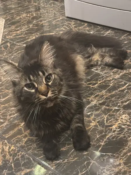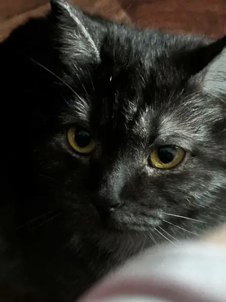 Кошка сидела в подвале под окном центра культуры нгту, не могла вы прыгнуть обратно. Под темной шерстью белый подшерсток. Пон носиком белая точка, также на всех лапка белые носочки