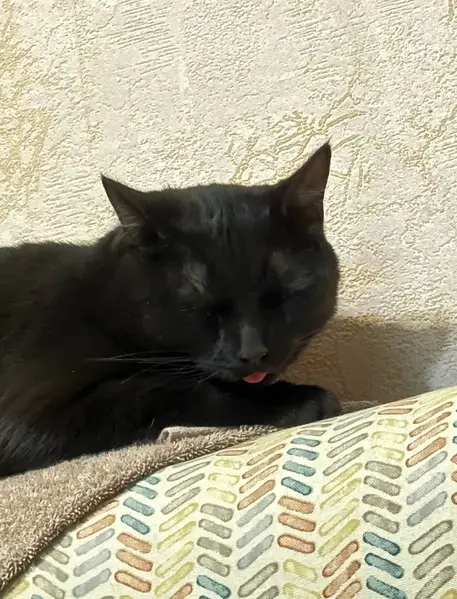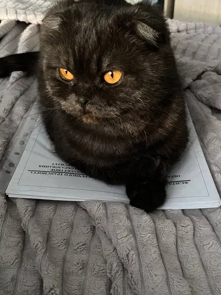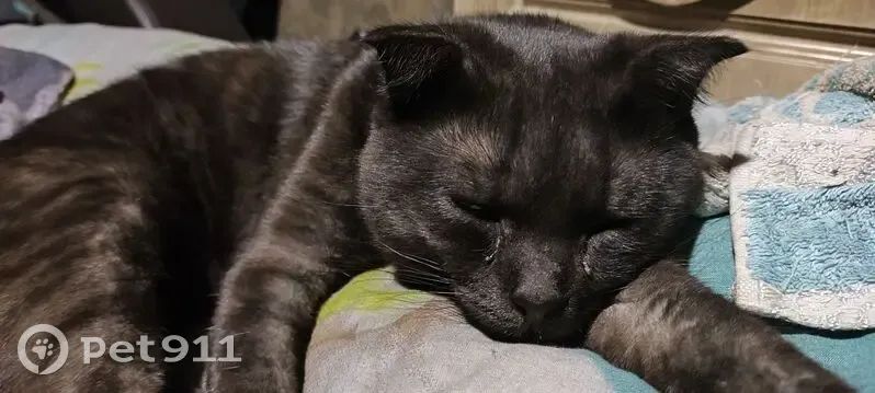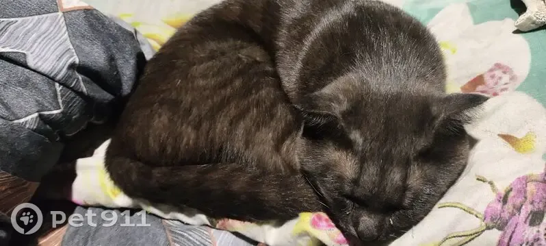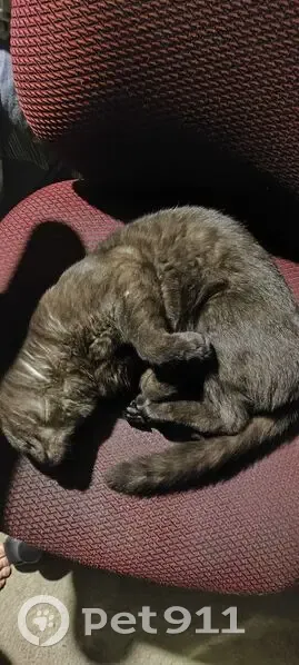 Черно-дымчатого цвета с тигровыми (черными) полосками, вислоухий. Ласковый и добрый, ест только жидкий корм, людей не боится, немного крупненький, но не старый. Нашлась возле вокзала главного во дворах.