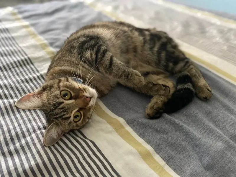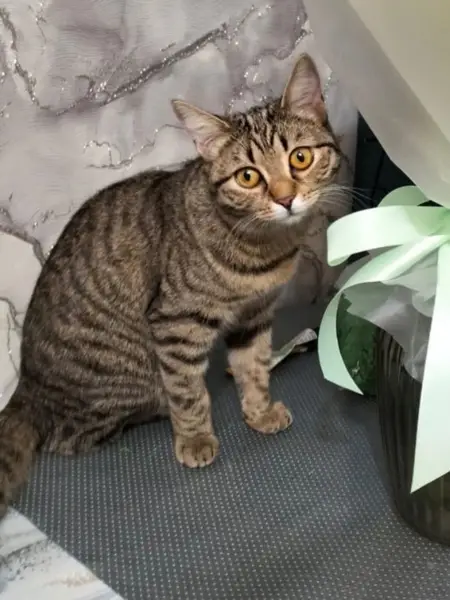 Нашла кошку около Пятерочки, дружелюбная, не боится людей, но очень худая, голодная Видимо полгода коту Был в сером ошейнике от блох Игривый, ласковый, имеет привычку протягивать лапы к лицу в знак любви))