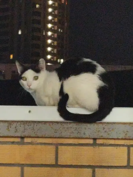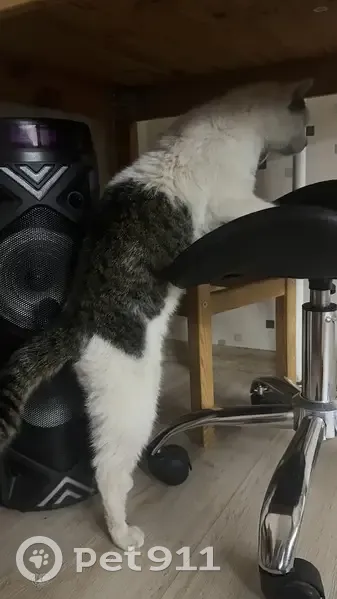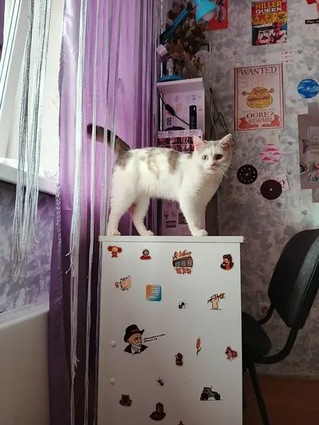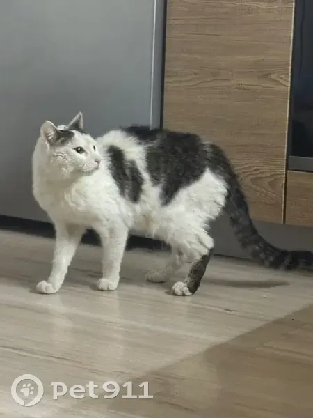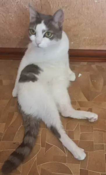 Белый кот. 2 темных пятна на лбу, возле ушей. На левом боку ближе к передней лапе 2темных пятна. На спине огромное пятно, переходящее на хвост. На левой задней ноге от подушечек до места где сгибается лапа тоже темное пятно. Кот пока что у меня. По адресу вертковская 121. Вышла из кв, а он у меня прямо за дверью, обошла пару этажей, никто не знает чей. Взяла на передержку, в надежде найти старых или новых хозяев. Долго у себя держать тоже не смогу, поскольку у самой их 3ое.Кот ручной, очень ласковый, зооагресии не имеет, кушает хорошо, лоток знает, моется тоже спокойно.