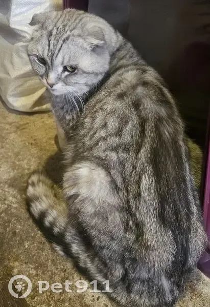 Нашёлся шотландский вислоухий кот, окрас серый и светло-серый, ласковый, очень худой, видимо потерялся давно. Очень ждёт своего хозяина. Кто узнал кота, звоните.