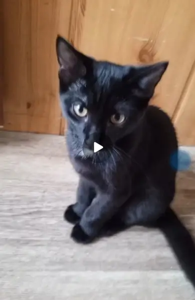 Черный котенок с маленьким белым пятнышком на грудке , белым пятном на животике, 3-4 месяцев был подобран на улице Бородина, 15. Истошно мяукал возле мусорных баков.