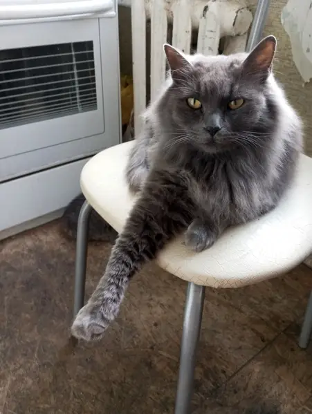 Найден кот в Калининском районе15.06.22 во дворе дома по Учительской 24,окрас дымчатый, пушистый, очень ласковый и ручной. Знает лоток. Не кастрирован.