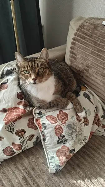 Ласковая, добрая, ручная кошка, в полоску с белыми лапками, ходит в лоток. Оставить не могу даже на передержку, есть свой кот который не принимает никого.