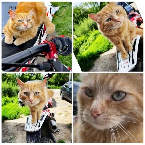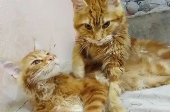 Рыжий пушистый котик,на шее синий ошейник с колокольчиком, ручной домашний котик