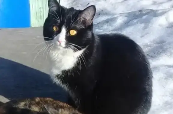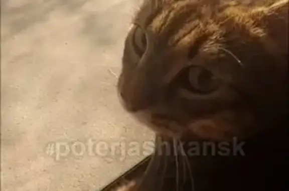 Полосатая кошка или кот, больше похожа на кошку. Обнаружили в подъезде примерно неделю назад. Стараюсь подкармливать, очень жалобно мяукает. К людям подходит