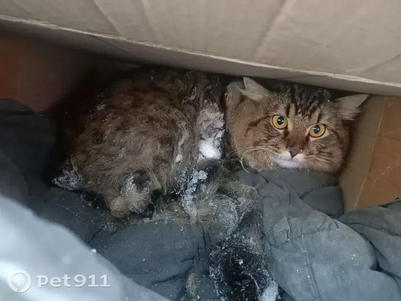 Найден в сугробн на КСМе кот, видно, что домашний и испуганный, помогите найти любящих хозяев пушистику, себе взять не могу домашний кот его задирет.