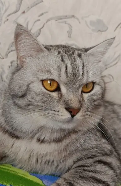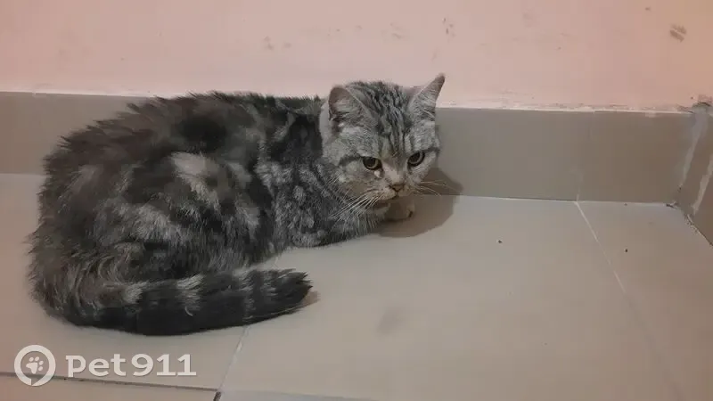 Скорее всего кот, (стерилизован), домашний. Окрас светлосерый, в полосочку. Порода похожа на шотладскую/британскую. Пожет быть помесь.