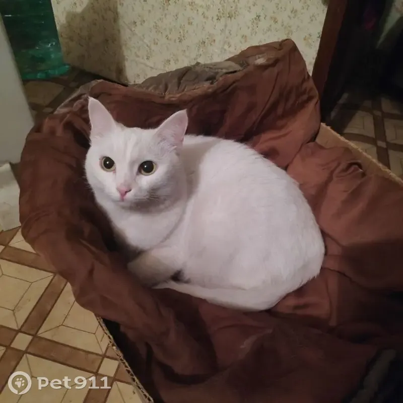Найдена полностью белая кошка с большим животом, предположительно беременная, была подброшена на территорию СНТ Волна 1 (Затулинка), возможно проживала в близлежащем СНТ им. Гагарина или в Новых Матрёшках. Кошечка была напугана, сильно мяукала, временно забрали в дачный дом. По виду ухоженная, ласковая.