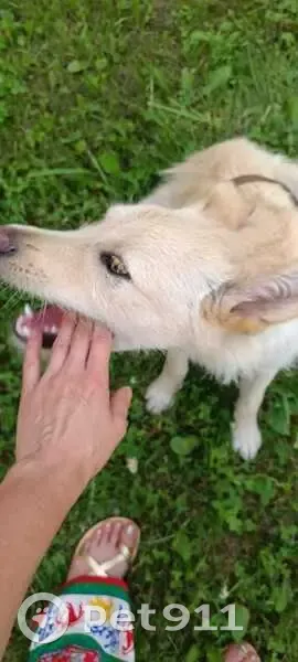 Светлый. Солома пшеница. Подошла сама. Девочка ласковая контактная. На вид мсяцев 5-6. Маленькая бородка. Терьеристого типа. На конце хаоста белая кисточка. На боку была маленькая ранка но уже заживающая.