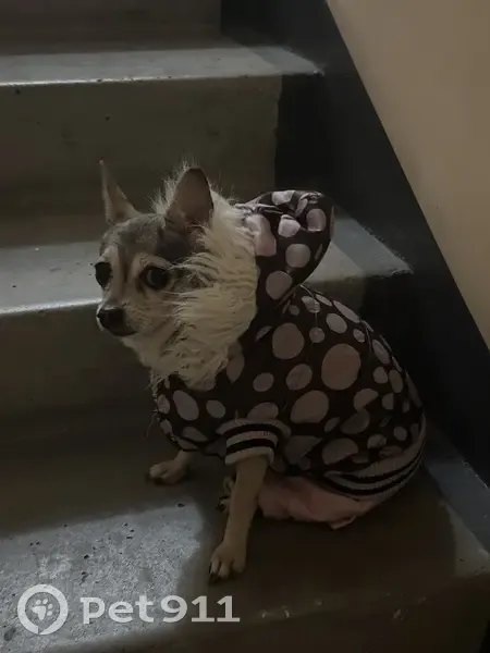 Чихуахуа в розовом комбинезоне, просилась во второй подъезд дома адрес: микрорайон стрижи 2 Собака замерзла, час никто не приходил я стояла ждала, потом смогла взять её на руки и занесла в первый подъезд, что делать с ней не знаю, на улице бы она промерзла, сидит спокойно, к себе взять не можем у нас кот