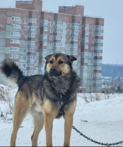 Нашелся кобель (5-6 лет), фенотип немецкой овчарки, крупный. Знает команды. Скорее всего жил в вольере, т. К. В квартире ему непривычно. Потерялся в районе улиц Пролетарской, Грибоедова, Коммунстроевская. Возможно, сорвался из дома в частном секторе, т. К. Первоначально был ошейник и часть цепи. На поводке гулять не приучен, т. К. Все время тянет. С другими собаками очень общительный.