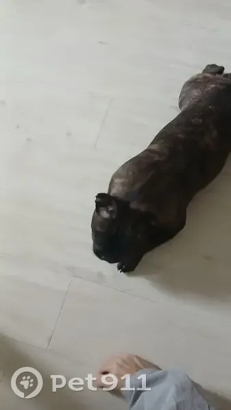 Мальчик, окрас черный с серыми вкраплениями и белым галстучком, бульдог, или мопс. Бегал за всеми, увязался, опросила людей вокруг на улице, во дворе, в магазине, никто не признал.