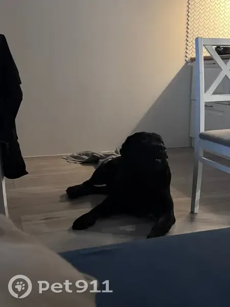 черный лабрадор, нашли у подъезда взяли домой т. К стало очень жалко, знал дорогу до лифта и по подъезду, подумали что с нашего дома, но хозяина так и не нашли( сможем держать у себя только до 16:00 17.03 иначе в приют