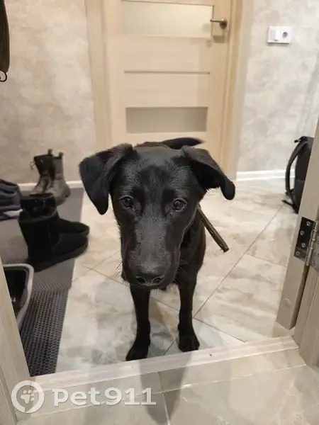 Щенок, кобель, около полугода, беспородный, гладкошерстный, чёрный, худенький, но не тощий, рост ниже колена. Ушки полувисячие. На шее был зелёный брезентовый ошейник, на вид новый. Без наружных паразитов, чистенький, как из квартиры. Ранее был замечен у кирзаводской Ленты.
