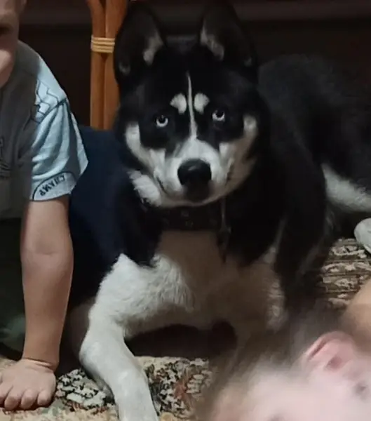 Хаски, девочка, молодая, не худая. Глаза разные. В черном ошейнике. Без какой-либо агрессии. 27 февраля в районе обеда, недалеко от остановки Учительская, увязалась за дочерью. Ищем хозяина .