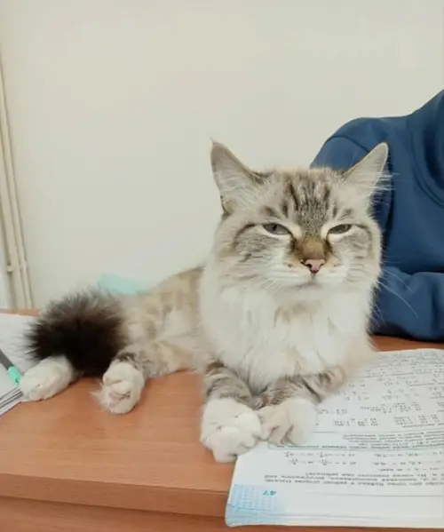 Окрас светлый, порода похожа на ленинградскую маскарадную. Выпрыгнул с 3 этажа.