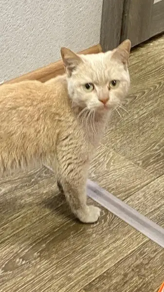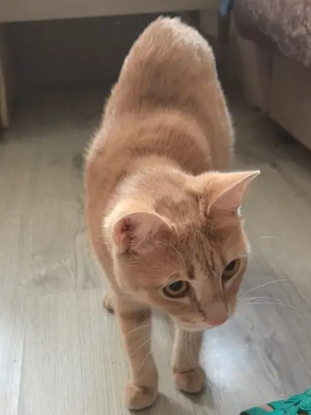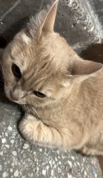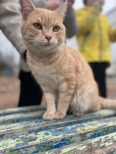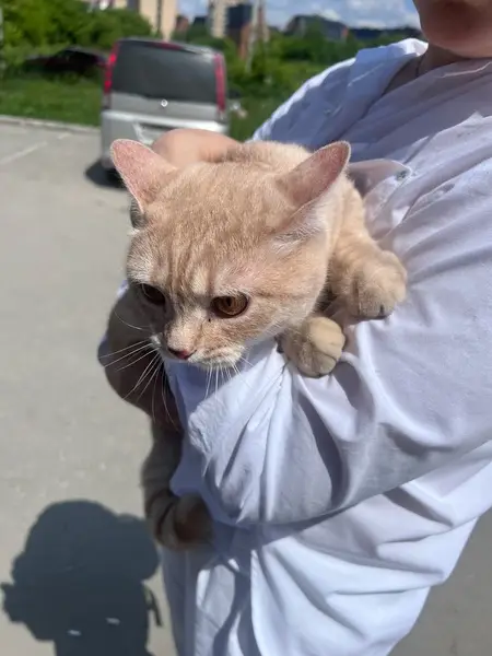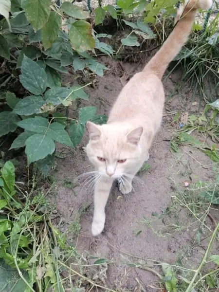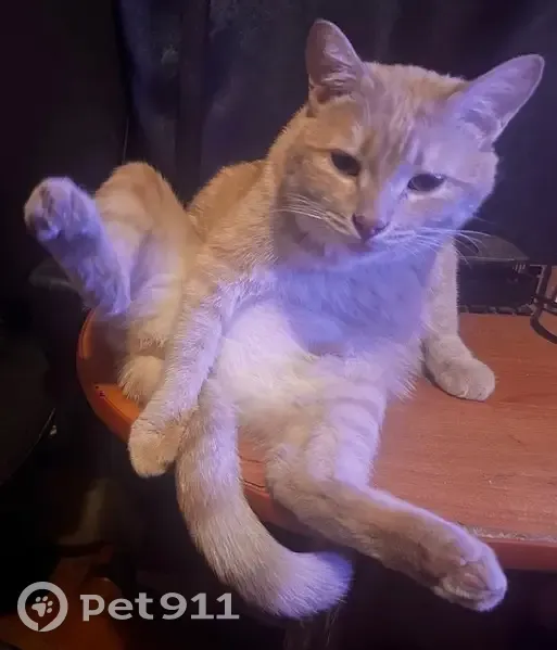 Молодой кот, цвет - персиковый, возраст - около года, очень пугливый, на кличку может не откликаться, пребывает в стрессе, при приближении людей может убегать, да и в принципе контакта избегает, потому что уличная среда для него непривычна