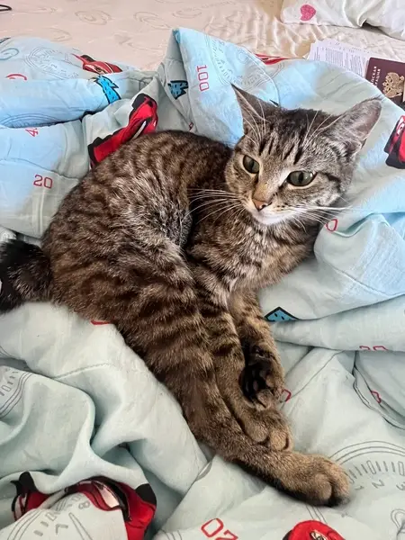 маленькая, пугливая ,очень шустрая , охотница до птичек, спрыгнула или, не успев поймать птичку , упала с балкона третьего этажа... Окрас обычной дворовой кошки, желтые глазки, шерсть средней пушистости.