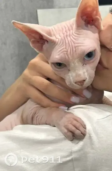 Потерялся кот.Выпрыгнул с 2 этажа,многоэтажный дом Потерялся в районе 5-4 часов Курчатова 11/3 Порода сфинкс Примечания:глаза разного цвета,один зеленый другой голубой,чуть чуть шерстяной хвост Отзывается на кскс