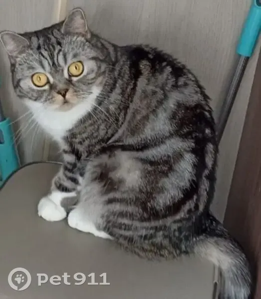 Кошка 5лет ,типа Вискас (скотиш страйт).Черно-белая с серым, рыжина на носу. Пушистая. Линяет. Черепаховый окрас, белая грудка и носочки. Выпрыгнула со 2 этажа ночью. Местность не знает, дом наверное не найдет сама.