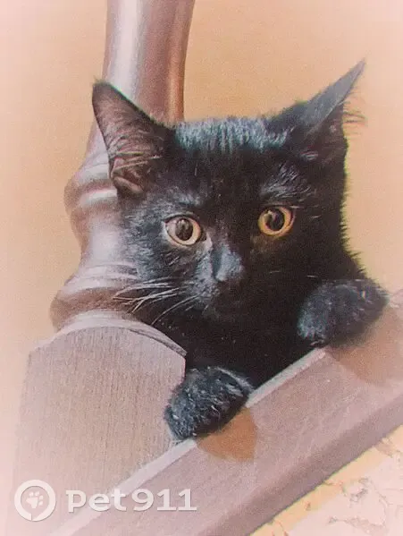 Котёночек молодой ,некрупный, возраст 1 год и 2 месяца, жёлтые глазки, чёрного цвета котик с коричневатым отливом, ласковый, но чужих людей побаивается, худенький, вес 3 с небольшим килограмма. Не осторожный,