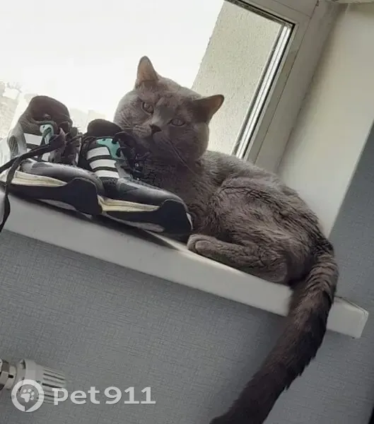 Шёрстка светло-пепельная, глаза желтые, крупный кот, полубританец. Ходит только в лоток. Не кастрированный. Сбежал во время поездки в поликлинику, для кастрации.