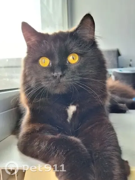 Чёрная кошка, с белой грудкой, также неравномерно белая шерстка есть на животике. Кошка отзывается на кис-кис, предположительно прячется где-то вдоль дома (9 гвардейской дивизии 24) последний раз была возле "invitro" что располагается прям внутри дома, пряталась под ступеньками.
