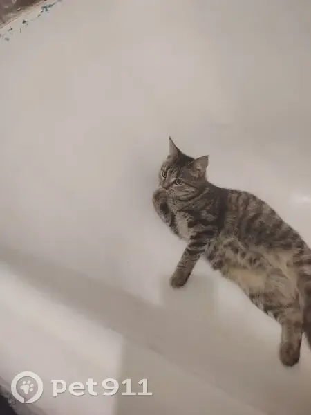 Беспородная, трехцветная кошечка. Добрая, ласковая, домашняя, легко идёт на контакт с незнакомыми людьми Ночью выпрыгнула из открытого окна на 1 этаже, раньше не бывала на улице, возможно, напугана. Ошейник найден на улице рядом с окном