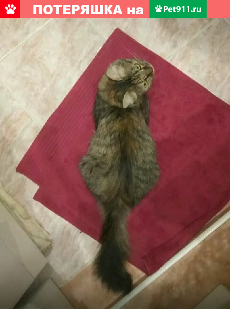 Потерялась кошечка!! 23.03.19г.Поздно вечером выпрыгнула с 1этажа. Выборная 91/4. Октябрьский р-он. 2года, но по размерам чуть больше полугодовалого котенка. Окрас- полоски есть на лапках и мордочке. На теле полосок нет, есть рыжие размытые пятна, самое заметное в районе шеи, между ушей. Шерсть длинная. Кошка домашняя и одна на улице не гуляла.
