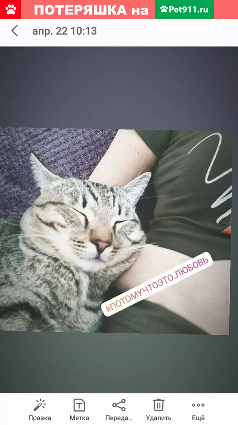 Дорогие жители города, не останьтесь равнодушными!!! Потерялся кот, любимец и друг семьи! Если кто-то видел, просьба сообщить по или Нет уже больше 2-х суток, потерялся в районе Нечетного парка д. 7 Особых примет нет, он был без ошейника, не кострирован, самая отличительная черта это его дружелюбность,он любит облизывать лицо человеку и вылизывать волосы как "мама котенку " Пожалуйста, если кто-то его подобрал, верните за вознаграждение очень прошу