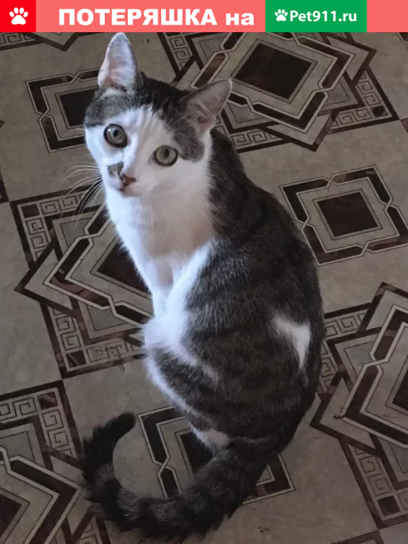 Молодой около 3х лет,мальчик,не кастрирован. Цвет глаз зеленый. Окрас: низ белый включая пол мордочки,верх темный есть черные полоски на спине и белое пятнышко,возле носа имеется коричневое пятнышко. Кличка Тимон.Выпал с окна. Пожалуйста,если кто видел или забрал себе позвоните в любое время по номеру 8952-949-8317 Татьяна 8953-761-1432 Екатерина Очень сильно ждем и ищем своего котика